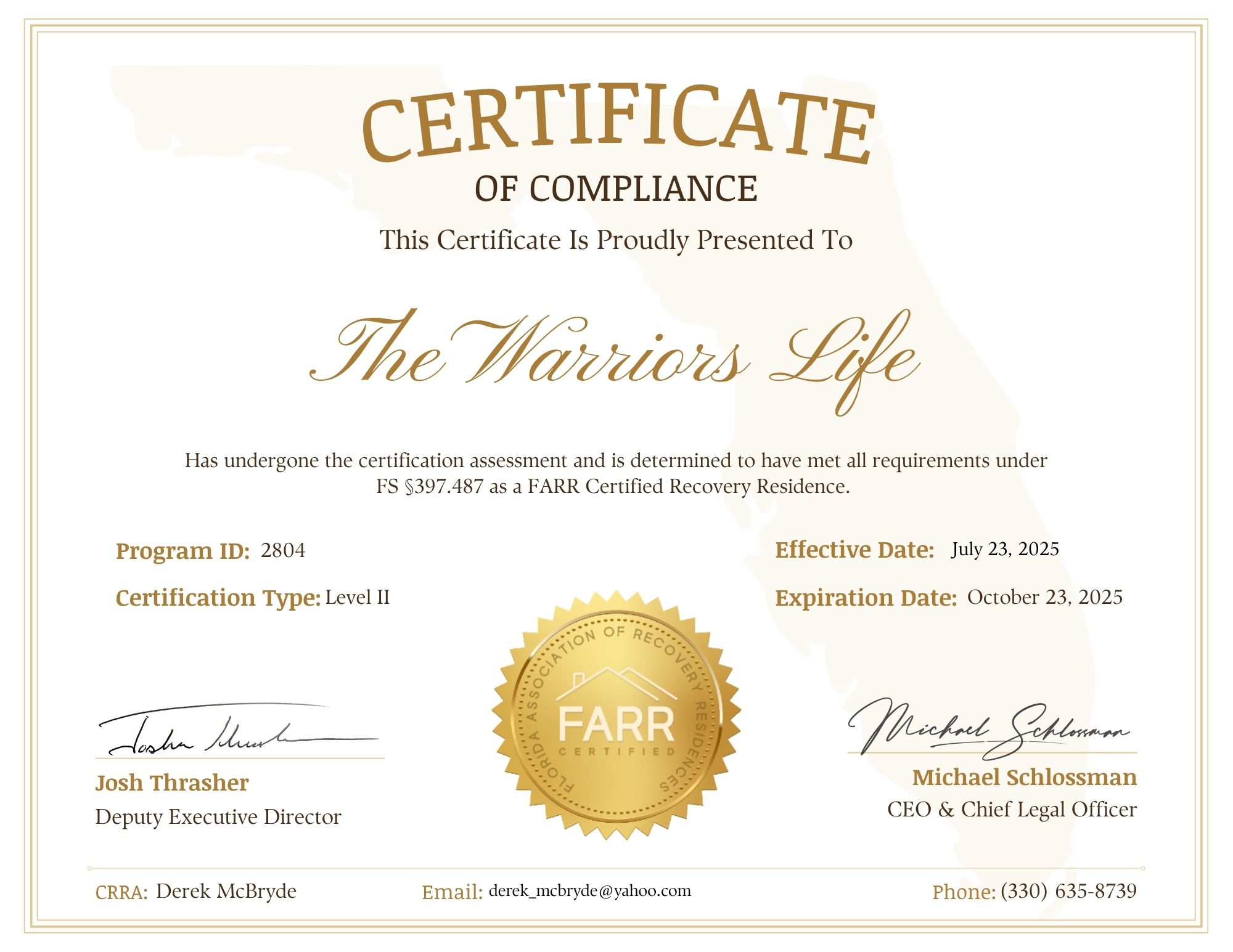 Right now the Warrior Life Meetings are behind the walls in the Hernando County Correctional Institution. We are building our Team of Warriors who are working on taking the mission into additional jails and correctional facilities nationwide.